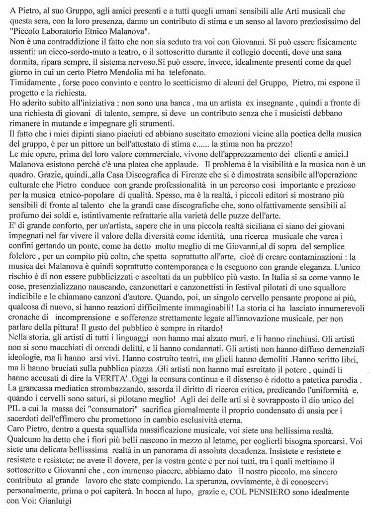 testo della lettera (che ci ha profondamente commosso) che Gianluigi